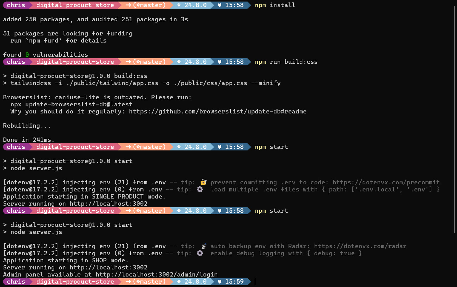 ๐จ๐ป npm run dev: Starts the application in development mode usingnodemonfor auto-restarts and provides styled, human-readable logs.โถ๏ธ npm run start: Starts the application in production mode.โก๏ธ npm run db:migrate: Runs all pending database migrations to bring the schema up to date.โฌ ๏ธ npm run db:rollback: Reverts the most recent database migration.๐จ npm run build:css: Compiles and minifies the Tailwind CSS for production.๐ npm run watch:css: Starts a process to watch for changes in your CSS and automatically recompile.๐จ npm run build:all: Creates the Initial Databases and Compiles and minifies the Tailwind CSS for production.๐จ npm run build:run: Creates the Initial Databases and Compiles and minifies the Tailwind CSS for production, and runs server.โจ npm run format: Automatically formats all project files (.js,.ejs,.json, etc.) using Prettier.โจ npm run format:check: Check which files will be formatted when running through Prettier